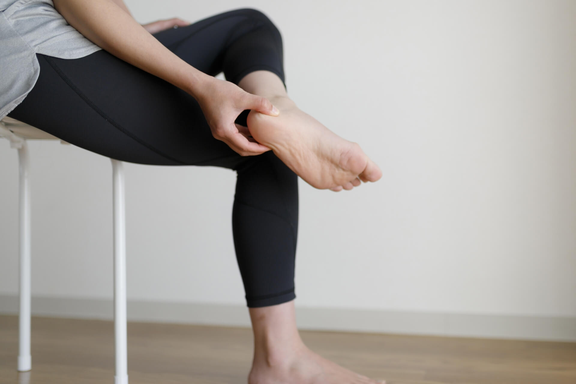 足底腱膜炎の主な症状は、かかとから土踏まずにかけての痛みです。特に朝起きて最初に足をついたときや、長時間座ったあとに立ち上がる際など、動き始めに強い痛みを感じやすいのが特徴です。